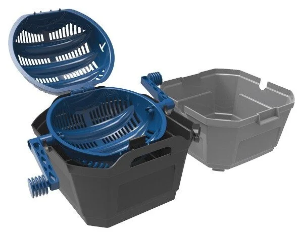 -Spill-proof tub fully captures water, dry media, & stainless steel pins