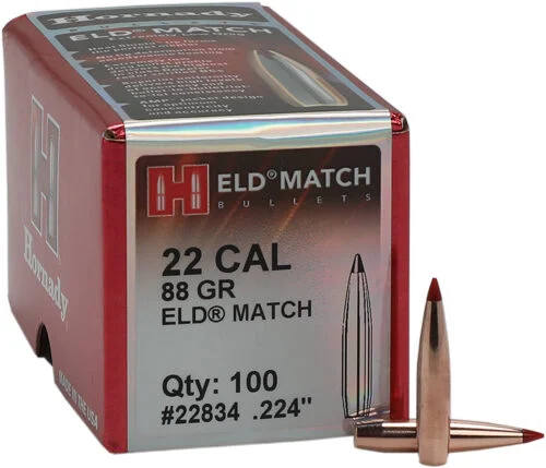 Looking for the best prices on HORNADY BULLETS 22CAL .224 – 88GR ELD-M MATCH 100CT 25BX/CS by Hornady? Netti Ammo proudly serves with unbeatable pricing, expert service, and exclusive rewards.