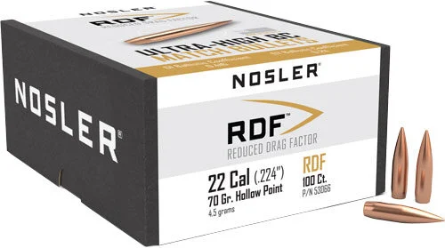 Looking for the best prices on NOSLER BULLETS 22 CAL .224 – 70GR RDF HPBT 100CT by Nosler? Netti Ammo proudly serves with unbeatable pricing, expert service, and exclusive rewards.