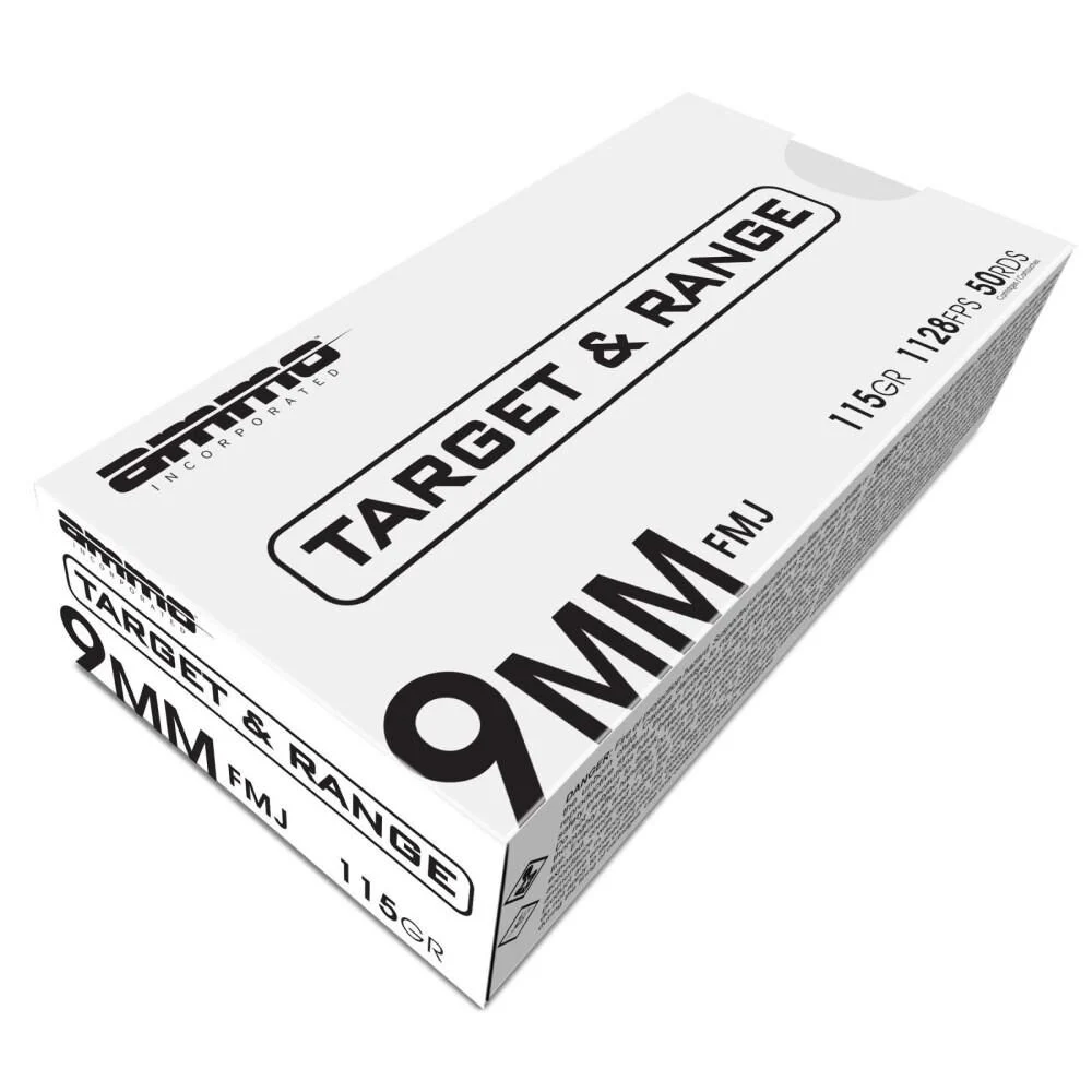 Ammo Inc. Target and Range Handgun Ammunition 9mm Luger 115 gr FMJ 1128 fps 50/ct