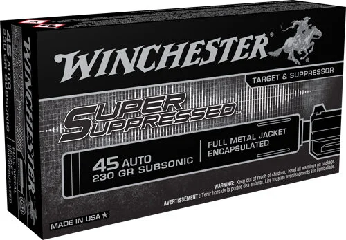 Looking for the best prices on WINCHESTER SUPER SUPPRESSED – 45 ACP 230GR FMJ 50RD 10BX/CS by Winchester? Netti Ammo proudly serves with unbeatable pricing, expert service, and exclusive rewards.