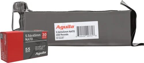 Looking for the best prices on AGUILA 5.56X45 55GR FMJ 450RD – BATTLE PACKS 5/BATTLE PER CASE by Aguila Ammunition? Netti Ammo proudly serves with unbeatable pricing, expert service, and exclusive rewards.