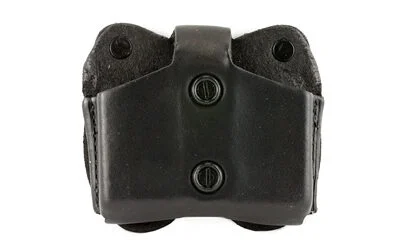 This double magazine pouch features a snap-to-the-belt design. May be carried horizontal or vertical. Available in black or tan unlined leather. Accommodates belts up to 1 3/4″ wide. Fully adjustable dual tension device. **PLEASE NOTE: POUCH FOR SMALL CALIBER GUNS MAY NOT ONLY FIT BELTS UP TO 1 1/2″ AND MAY ONLY HAVE THE VERTICAL BELT SLOTS.**
