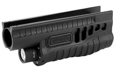 The SFL-11WL shotgun forend weapon light is a complete forend replacement for your 12 gauge Mossberg 500/590/590A1 or Shockwave pump-action shotgun. Built from a one-piece body of heavy-duty glass-filled nylon with an over-molded rubber grip area, it features a super-bright LED rated at 1200 lumens with an hour and a half runtime. Designed around a high-efficiency deep parabolic reflector, the tightly focused beam has a 203-meter beam distance