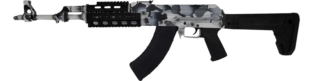 Zastava ZPAPM70 AK-47 Rifle – White Camouflage Cerakote | 7.62×39 | 16.3″ Chrome Lined Barrel | Quad Rail | Zhukov-S Folding Stock