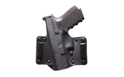 The Leather WING(TM) holster by BlackPoint Tactical is a naturally evolved version of the original KYDEX(R) holster. The Leather WING(TM) is designed to retain the most popular features of a KYDEX(R) holster, while improving the fit of the holster to the body through the addition of leather wings. These wings allow the holster to wrap and fit the contours of the waist. The seamless integration of leather and KYDEX(R) allows for the retention and function of a traditional KYDEX(R) holster, while providing the comfort of a traditional leather holster. The Leather WING(TM) allows the holster to naturally curve with the body, giving a much slimmer and more comfortable fit. This configuration allows for ultimate comfort, reliability, and concealment.