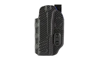 The Slim-Tuk Carbon Fiber is a minimal ambidextrous IWB holster fashioned from Kydex sheet. One of the most unique features about this IWB holster is that it uses DeSantis’ tuck-able 360 C-Clip, which affords the wearer unlimited mounting options. The hardware can easily be reversed to change from right to left hand. The Slim-Tuk is precision molded and has adjustable tension and a rugged 1.75″ nylon clip. Carbon Fiber exterior finish with a Blue Kydex interior.