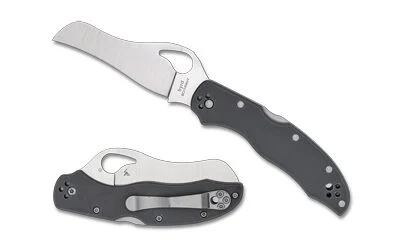 The newest member of the byrd flock is the distinctly different Gooney. Its defining feature is its unorthodox blade shape, which combines the functional elements of the sheepfoot, hawkbill, and our Reverse S patterns to yield a remarkably versatile cutting edge. Designed by Spyderco co-founder Sal Glesser, its blade is full-flat ground from 9Cr14MoV stainless steel for exceptional edge geometry and low-friction cutting performance. The blade is supported by a stout back lock mechanism housed within a linerless handle featuring gray, peel-ply-textured G-10 scales. To support a full range of carry preferences, the handle includes a four-position pocket clip that can be configured for tip-up or tip-down carry on either side of the body. A generously sized lanyard hole in the butt of the handle completes the package, allowing the easy attachment of fobs, lanyards, and safety lines.
