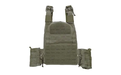 The GG Minimalist Plate Carrier is designed based on the mentality of lighter is better, with minimum frills, but a ton of function. Designed to carry 10×12 hard plates or large ESAPI plate. There are six rows of MOLLE/PALS style webbing with built in matching loop material on the top three rows, for the option of attaching patches or ID panels. The front of the carrier also features a discrete stash pocket that makes perfect storage for a variety of small items that might be needed in a hurry, such as maps, medevac cards or even a knife. Made for one size to fit most body types, the shoulder straps are adjustable and integrated elastic side straps keep a snug fit while still allowing for unexpected dynamic motion. Constructed from Mil-Spec materials to stand up to hard use, the inside faces of the carrier are lined with Air Mesh for comfort and breathability. The plate pockets are lined with 70D pack cloth for abrasion resistance.