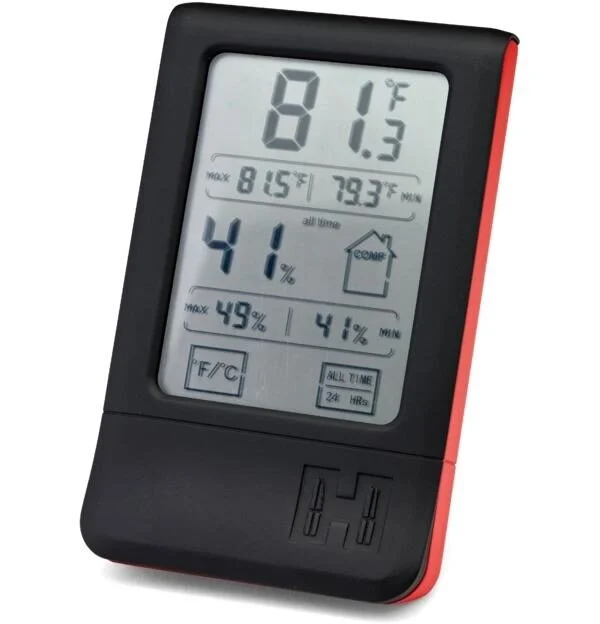 - Displays high/low for both temperature and humidity in either Fahrenheit or Celsius.