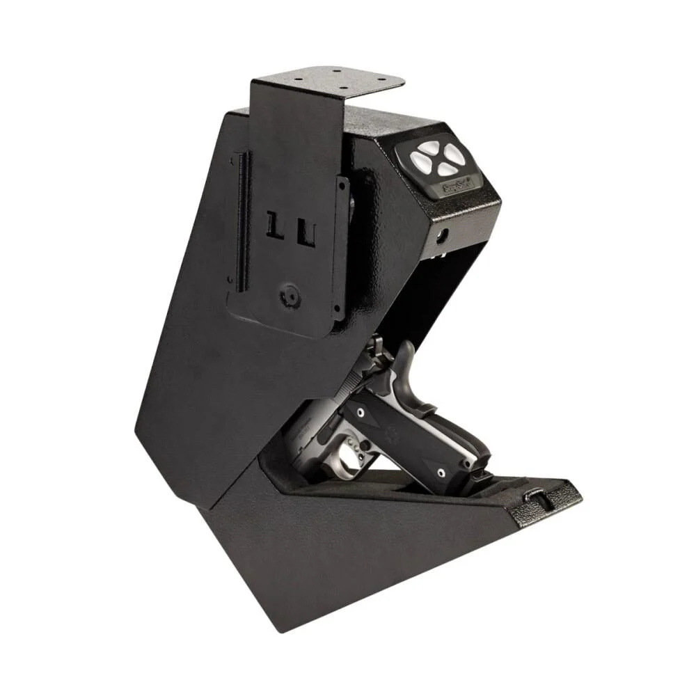 - Compact vault mounts under a counter or desk or on the side of a nightstand for quick access to your handgun.
