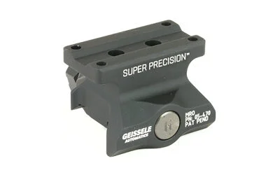 The Super Precision MRO Series was developed specifically to work with the Trijicon MRO and like mounted red dot optics. These mounts are precision machined from a single piece of 7075-T6 high strength aluminum. Utilizing Geissele’s update of the classic nut and bolt method, this mount will attach your red dot to your weapon with 1″400 pounds of clamping force, and features 3 shear lugs for maximum rigidity and return to zero.