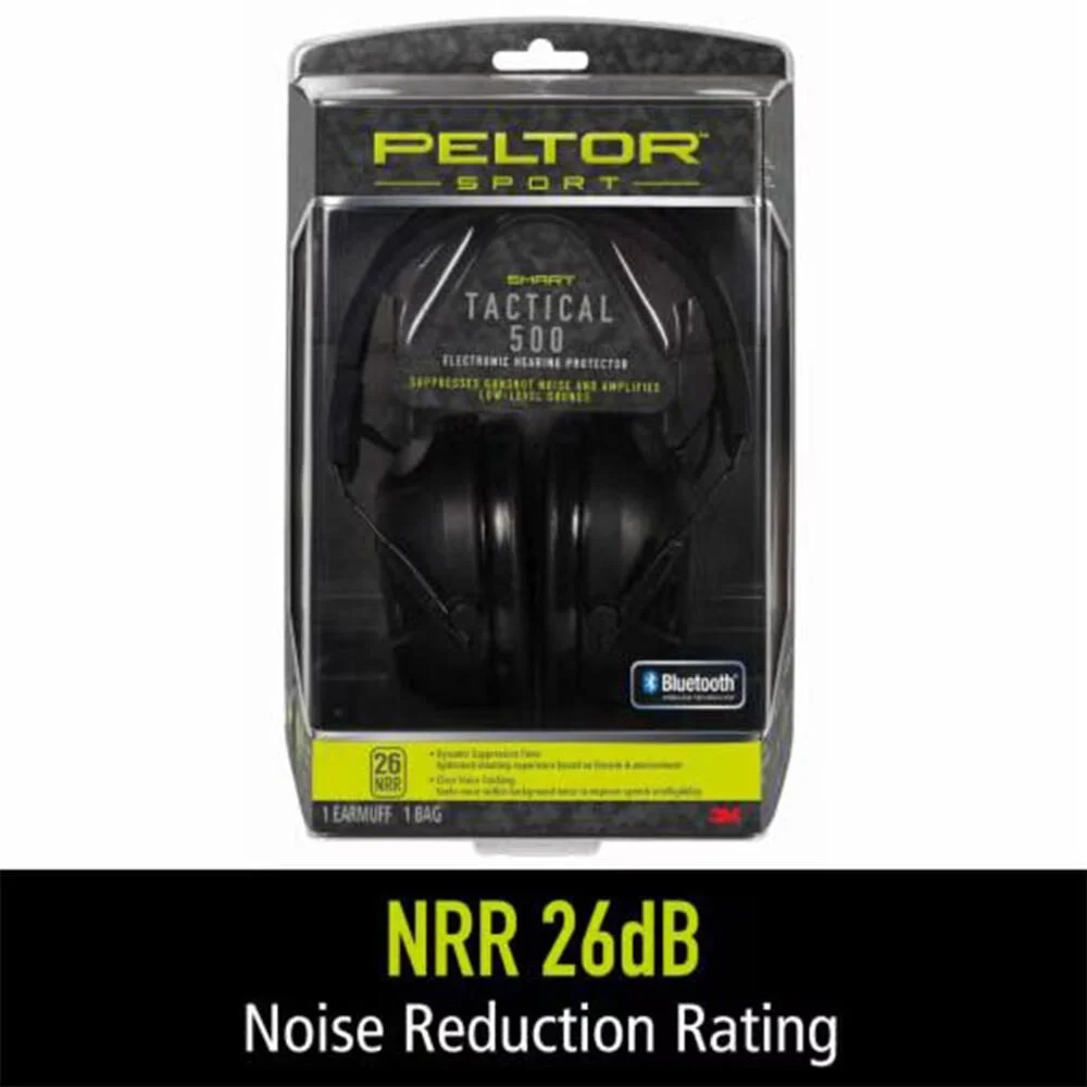 The 3M Peltor Sport Tactical 500 has a targeted NRR of 26 dB for passive sound protection. Suppresses gunshot noise and amplifies low sounds using proprietary 3M technologies. Dynamic Supression Time measures the energy in gunshot noise and automatically sets suppression time for reduced echoes and increased comfort. Clear Voice Tracking Technology seeks voice amongst the noise to improve speech intelligibility and situational awareness. Bluetooth Wireless Technology to seamlessly sync to mobile devices. Make and receive phone calls through the headset. Engineered for optimal fit and comfort. Foldable and adjustable.